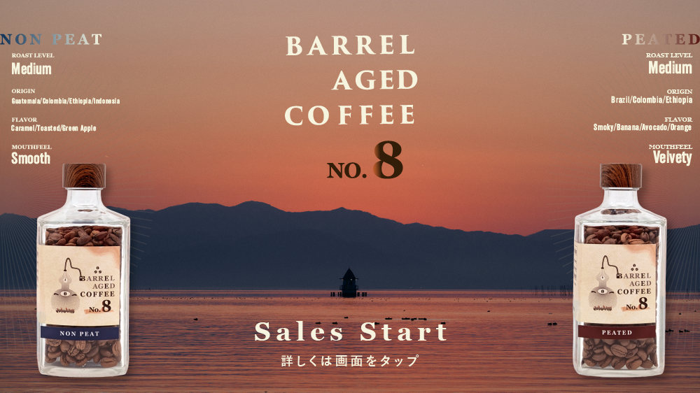 滋賀県・長濱蒸溜所のウイスキー樽を使用して誕生した、個性豊かなバレルエイジドコーヒー。「NON PEAT」と「PEATED」、夫々の個性をお楽しみください。